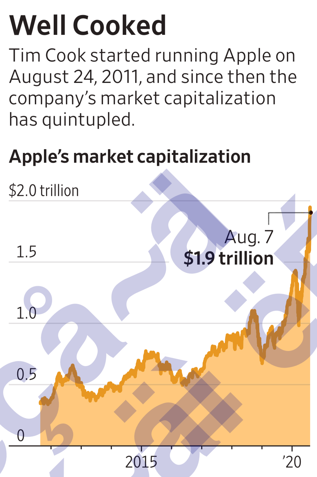 在库克的带领下,Apple 的市值从 2011 年的四千多亿美元市值增长到当前的 1.9 万亿美元,比加拿大、俄罗斯和西班牙的 GDP 还高。