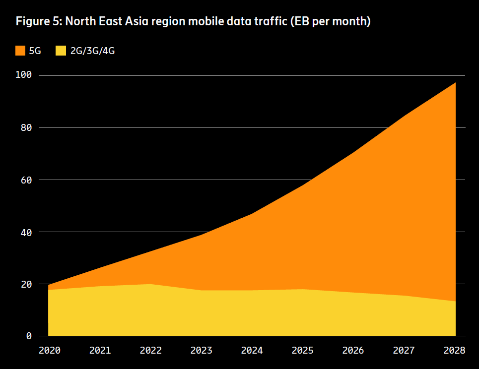 基于 Tefficient 对亚洲部分运营商的跟踪,大部分运营商的每 GB 流量收入在 1 欧元以下,新加坡 SingTel 可实现 每 GB 3~4 欧元,算货币化程度最高的运营商。
