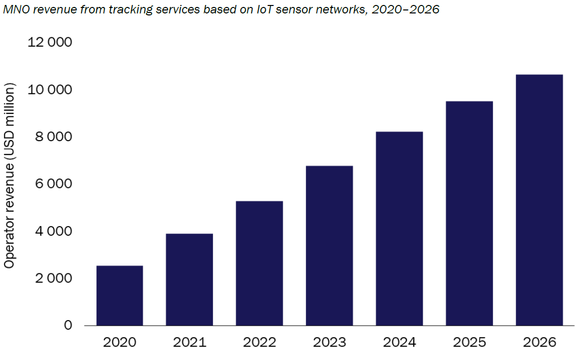 Analysys Mason 预测运营商从从传感物联网获得的收入空间,在 2026 年会超过 100 亿美元。