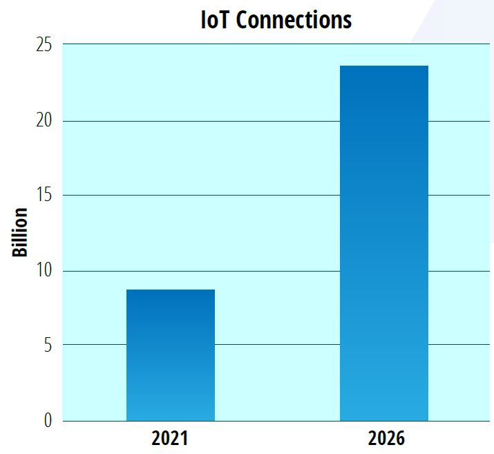 ABI 预计各种 IoT 设备到 2026 年会达到 236 亿左右。围绕 IoT 的安全服务会达到 168 亿美元。