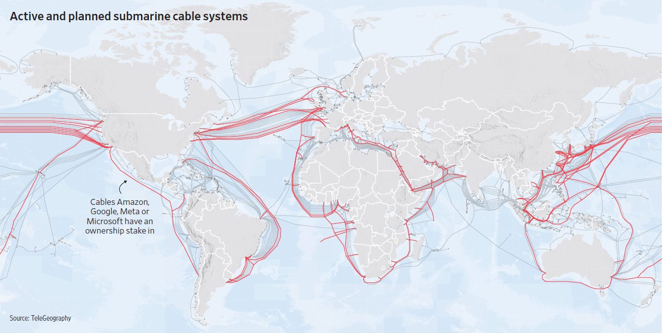 与此同时,这些互联网巨头也在直接投资建设自己控制的海底光缆。