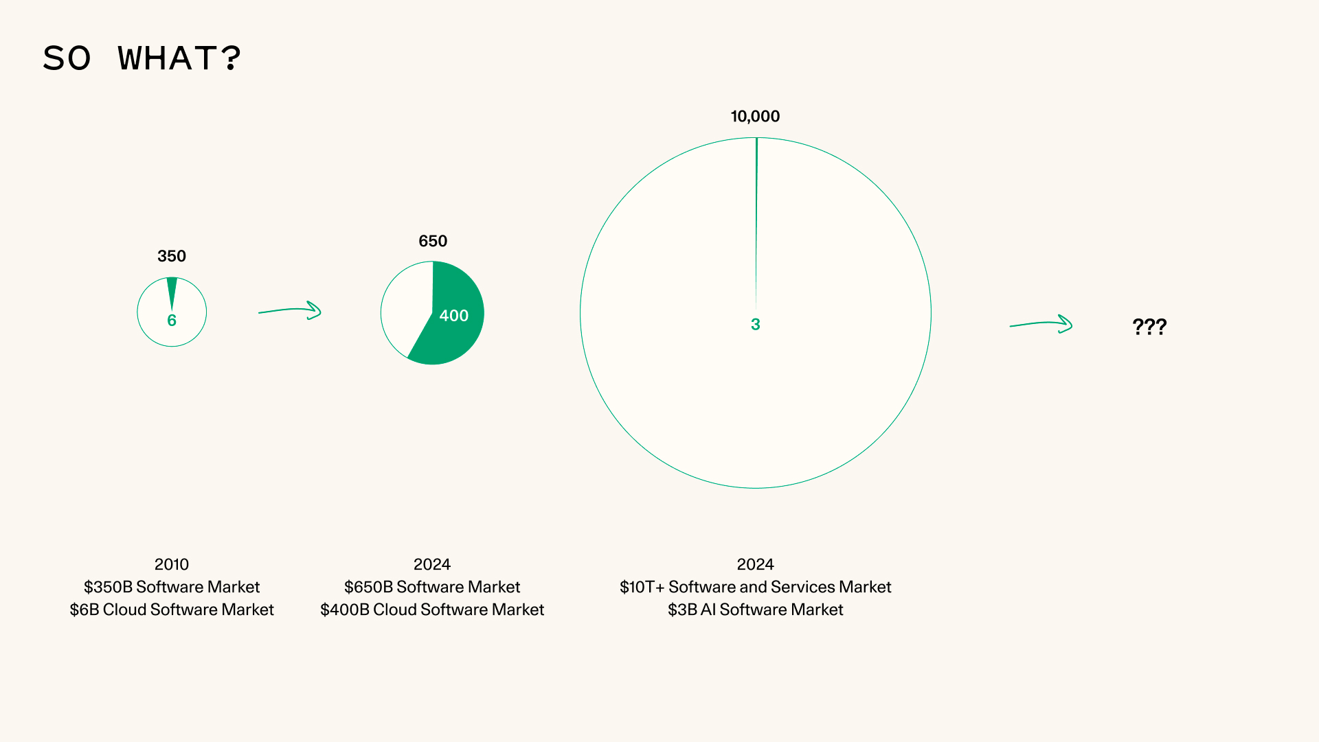 (3) 2024 年全球 10 万亿美元的软件和服务市场,只有 30 亿是 AI 软件;