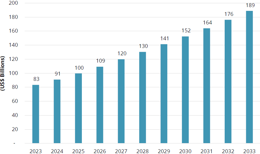 Analysys Mason 咨询公司认为该领域在 2028 年运营商侧的支出可达 165 亿美元,2023-2028 的年复合增长率为 9.4%。