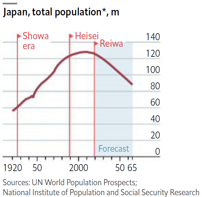WSJ 绘制了一张图,描述了全球人口的趋势。其选择了两个维度,65 岁及以上的老人和 5 岁及以下的儿童。