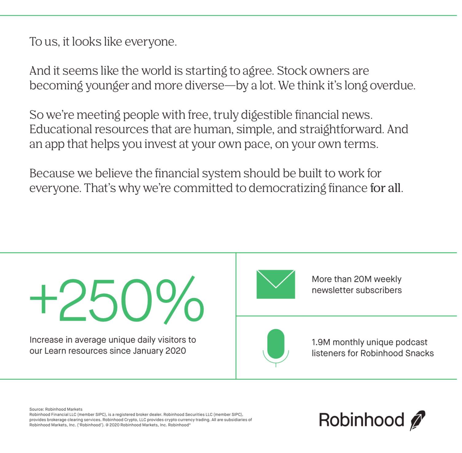 附图是 Robinhood 在华尔街日报广告,我留意到其强调几点信息: