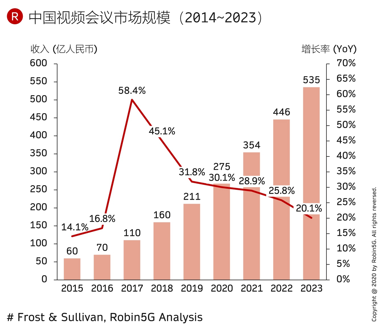 中国视频会议在 2018 年有 160 亿左右的市场空间,其中三成是传统视频会议系统(企业买一套私有化部署的设备),七成来自互联网和云端模式。