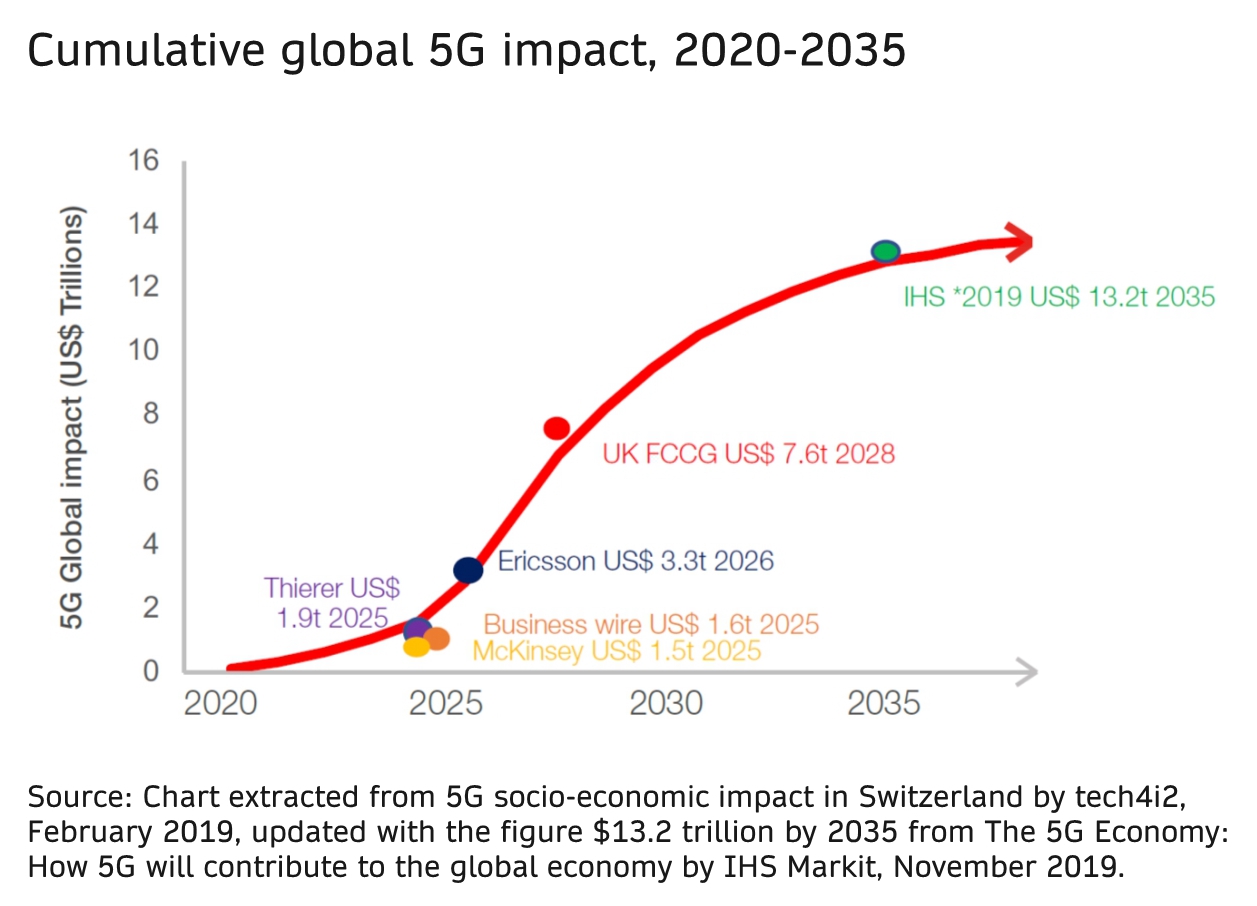 业界普遍认为 5G 对社会经济有巨大的价值撬动作用。到底有多大价值?不同机构给出了不同的数字。