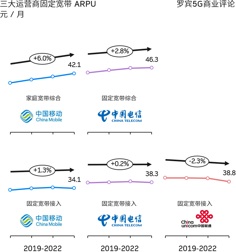 (2) 增值业务,尤其是智慧型应用对于拉动固定宽带综合 ARPU 价值明显。中国电信的智慧家庭可为宽带综合 ARPU 增加 8 元。中国移动在 2022 年智慧家庭收入接近 300 亿元,同比增长了四成以上。