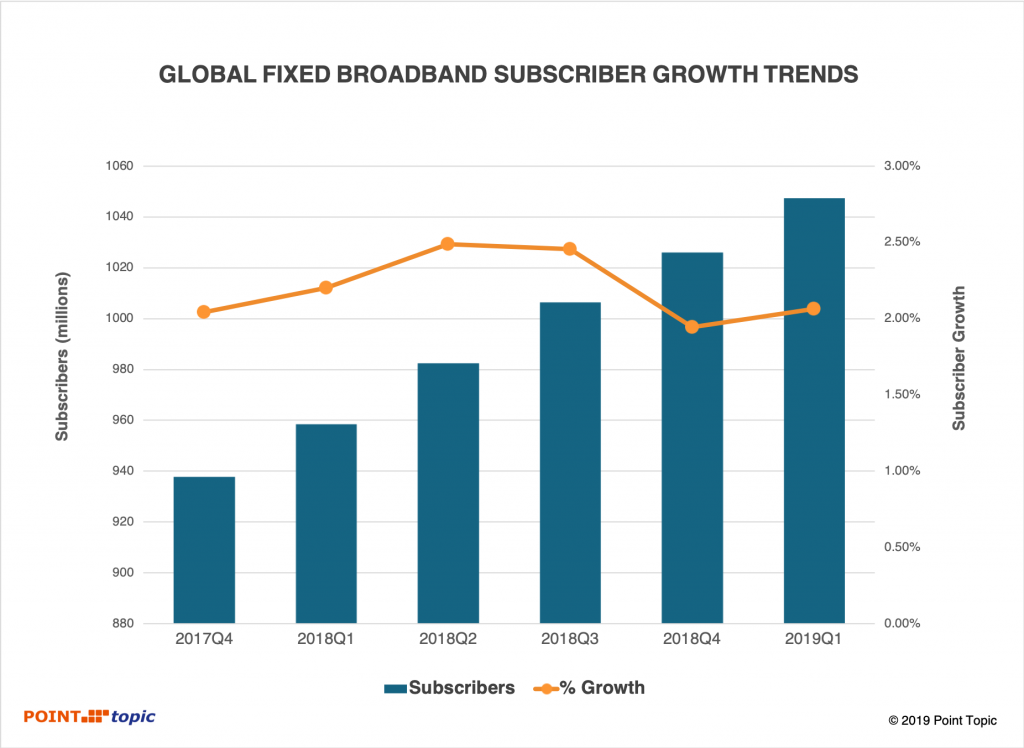 近年来,全球固定宽带(主要指家庭用户)的年度增幅保持在 2~2.5%。