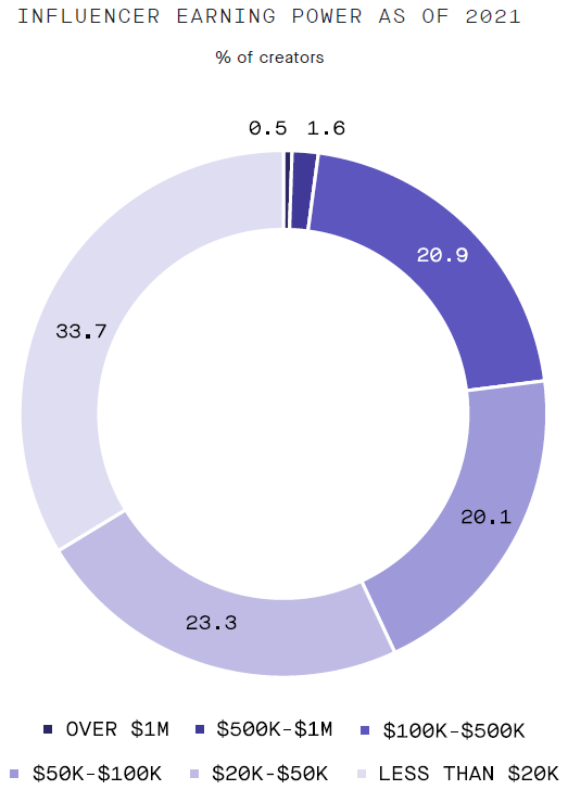 (3) 有 20.9% 的创作者收入在 10~50 万美元。