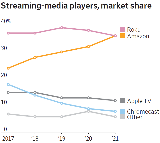 目前北美市场比较火热的 OTT TV / Streaming TV 则是指通过在线流媒体方式观看传统付费电视的节目。通常内容频道上会相对轻量级,也给了观众更多选择机会。