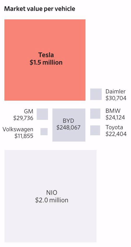 汽车公司每辆车 “市值” 多少?