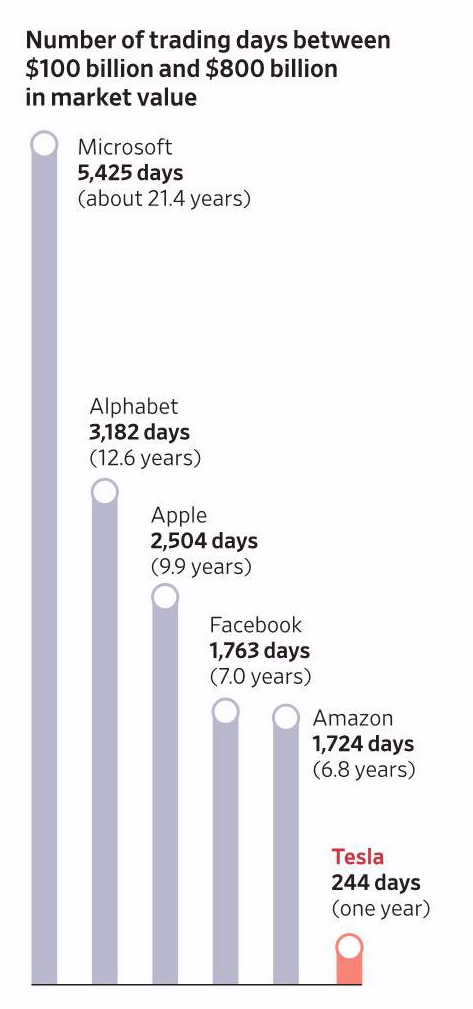 微软用了 21.4 年,谷歌用了 12.6 年,特斯拉只用了 1 年。