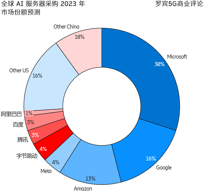 附图是对主要采购方的预测,显露名字是排名靠前的企业,各大互联网公司主导了 AI 服务器的采购份额。