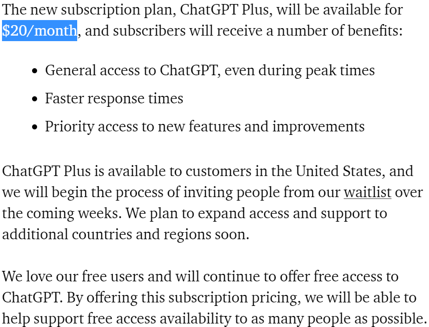 注:2023 年 3 月初新版 ChatGPT 的 API 定价进一步降低了价格。