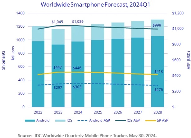 留意最下面那条黑色线条,Android 手机的平均单支售价。