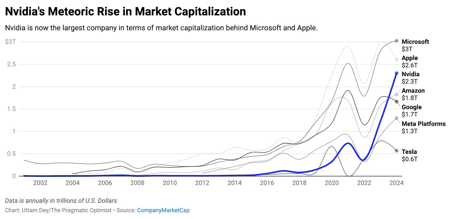 2021 年之前的长久时间内,Intel 的收入是远超 Nvidia 数倍的。而 2023 年开始,Nvidia 超过了 Intel 。