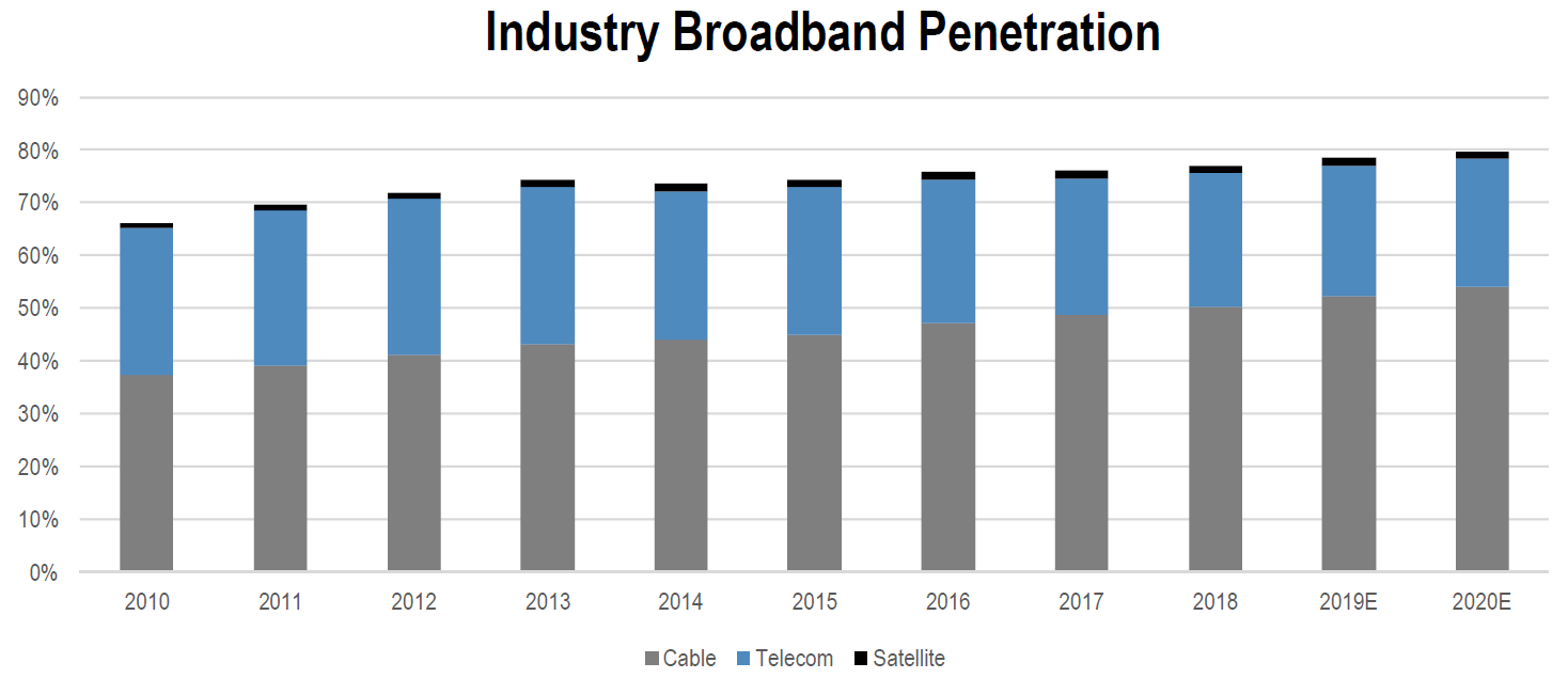 一个典型的家庭,既会通过固定宽带上网,也会通过智能手机使用移动网络的流量。