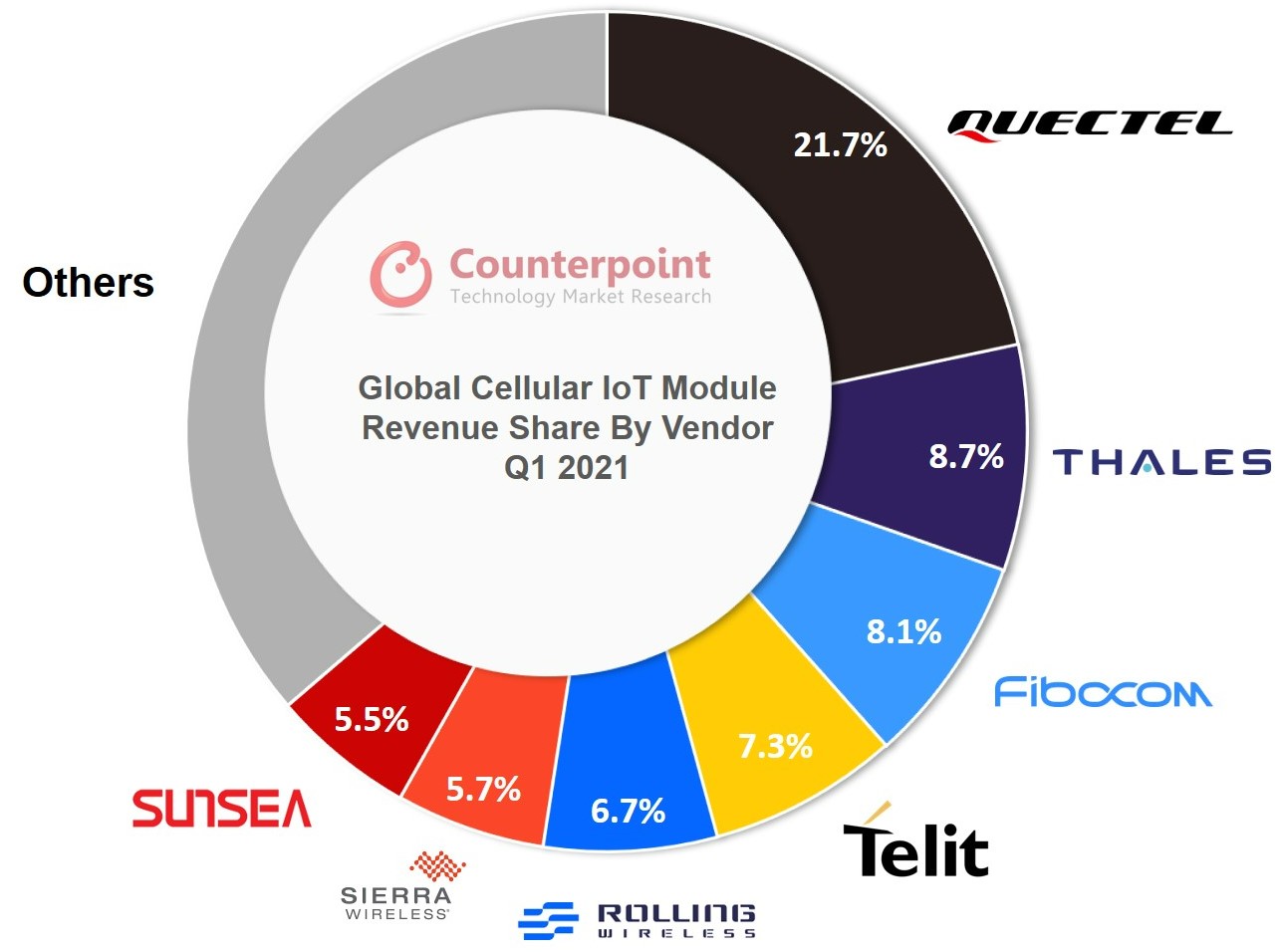 中国蜂窝通信模组厂商主要包括移远通信、广和通、日海智能、有方科技、美格智能、高新兴等,海外厂商包括Sierra Wireless、Thales、Telit 等。