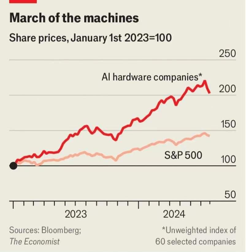 The Economist 预测到 2025 年,收入增长最快的领域还是半导体,其次是 AI 服务器的制造商。