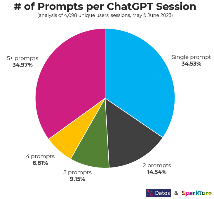 第三方数据监测机构 Datos 针对 4,098 位 ChatGPT 用户的用户会话数据进行了分析,围绕 “Prompt 提示词” 的使用有如下发现: