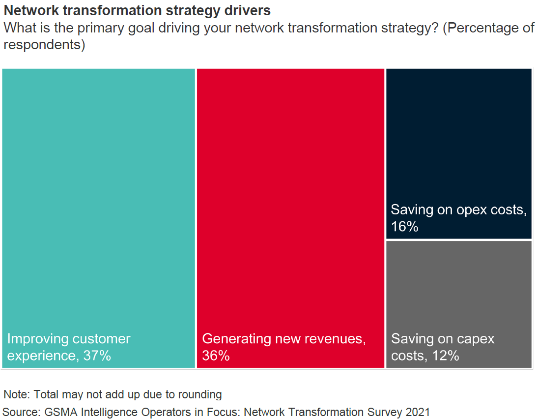 附图来自 GSMA 针对运营商的调研,研判热点技术主题在 “实施难度” 和 “投入回报” 的位置:
