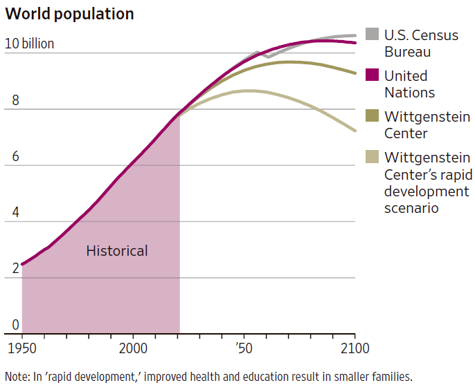 华尔街日报绘制了两张图展示了中美两国在劳动人上最近七十年的变化。