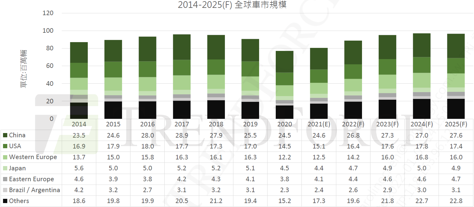 TrendForce 全球汽车销售量 2022