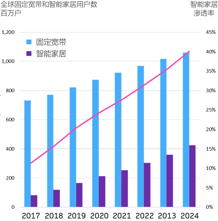 OMDIA 估计 2019 年全球智能家居市场的收入空间为 1210 亿美元,预计到 2024 年可达到 2490 亿美元,复合增长率 26%,算很高的增长率了。