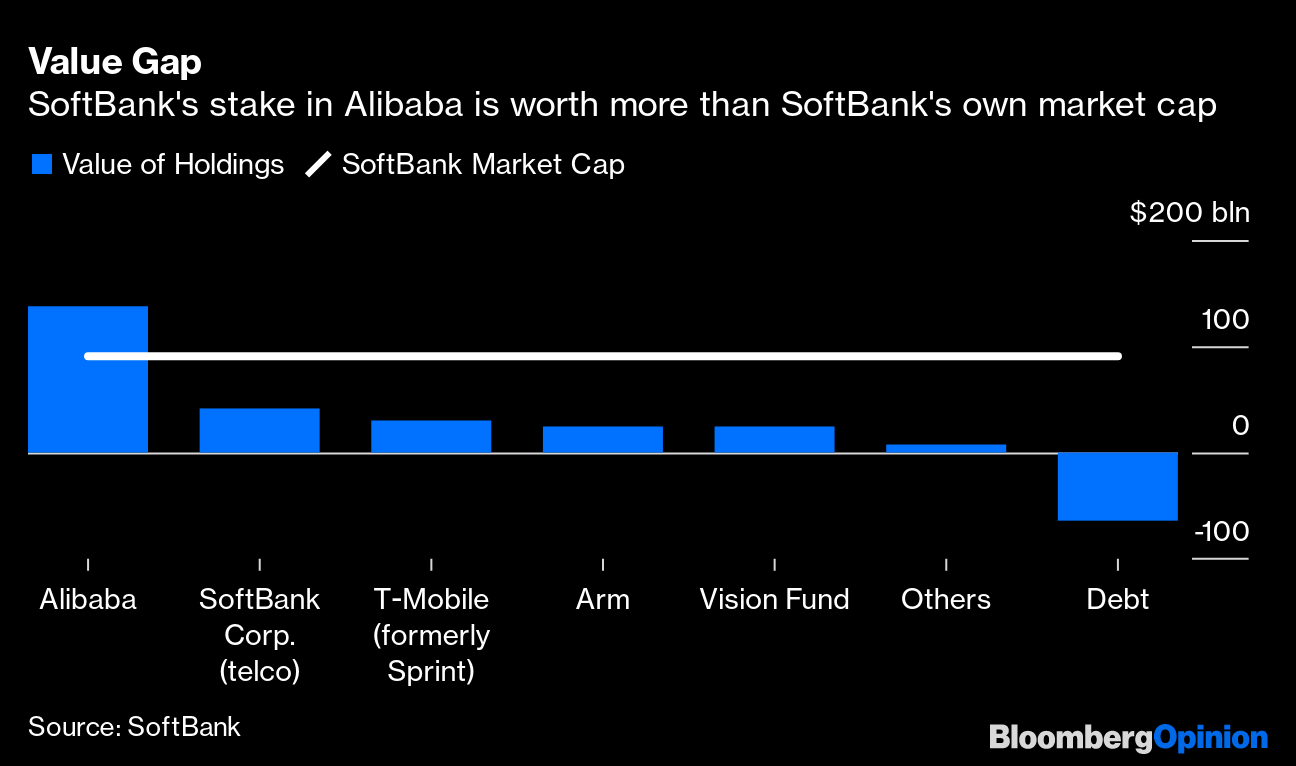 软银手中阿里巴巴股票的价值超过软银自身的市值
