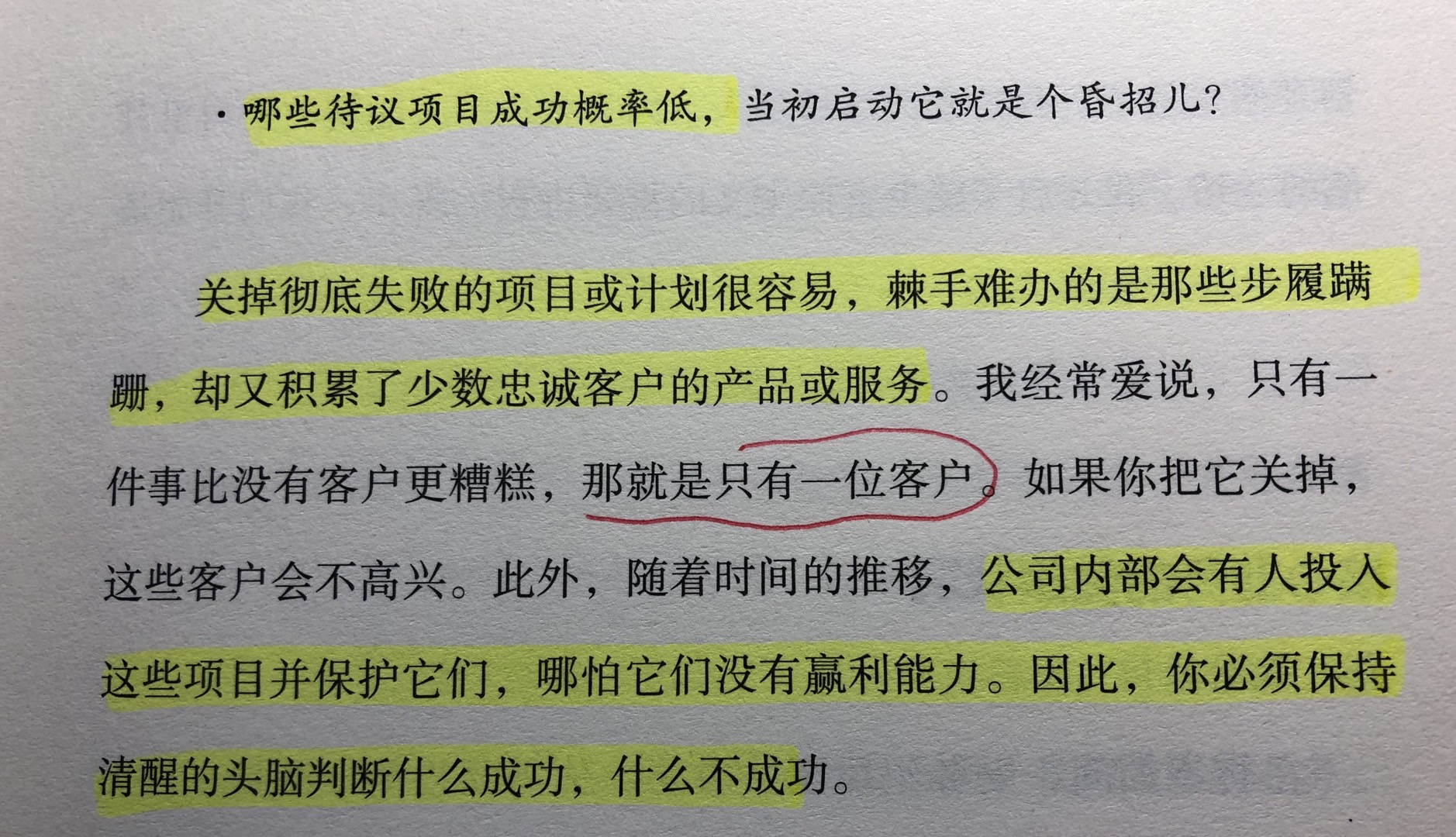 ② 彻底失败项目关掉很容易,棘手的是积累了少量忠诚的客户,但总业务量又不行的;