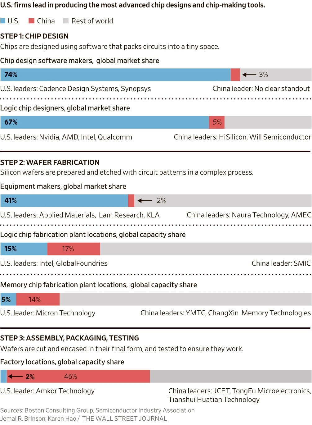 WSJ 基于全球半导体协会的最新数据,绘制了一张图展示了当前到 2030 年全球半导体产业的销售额的地域分布。