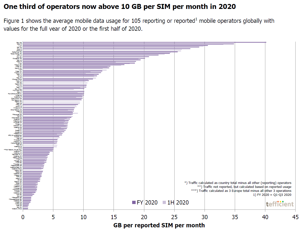 移动用户的人均月流量(DOU)使用是电信行业的经典指标。各家公司也会持续的预测目标公司的 DOU 变化。
