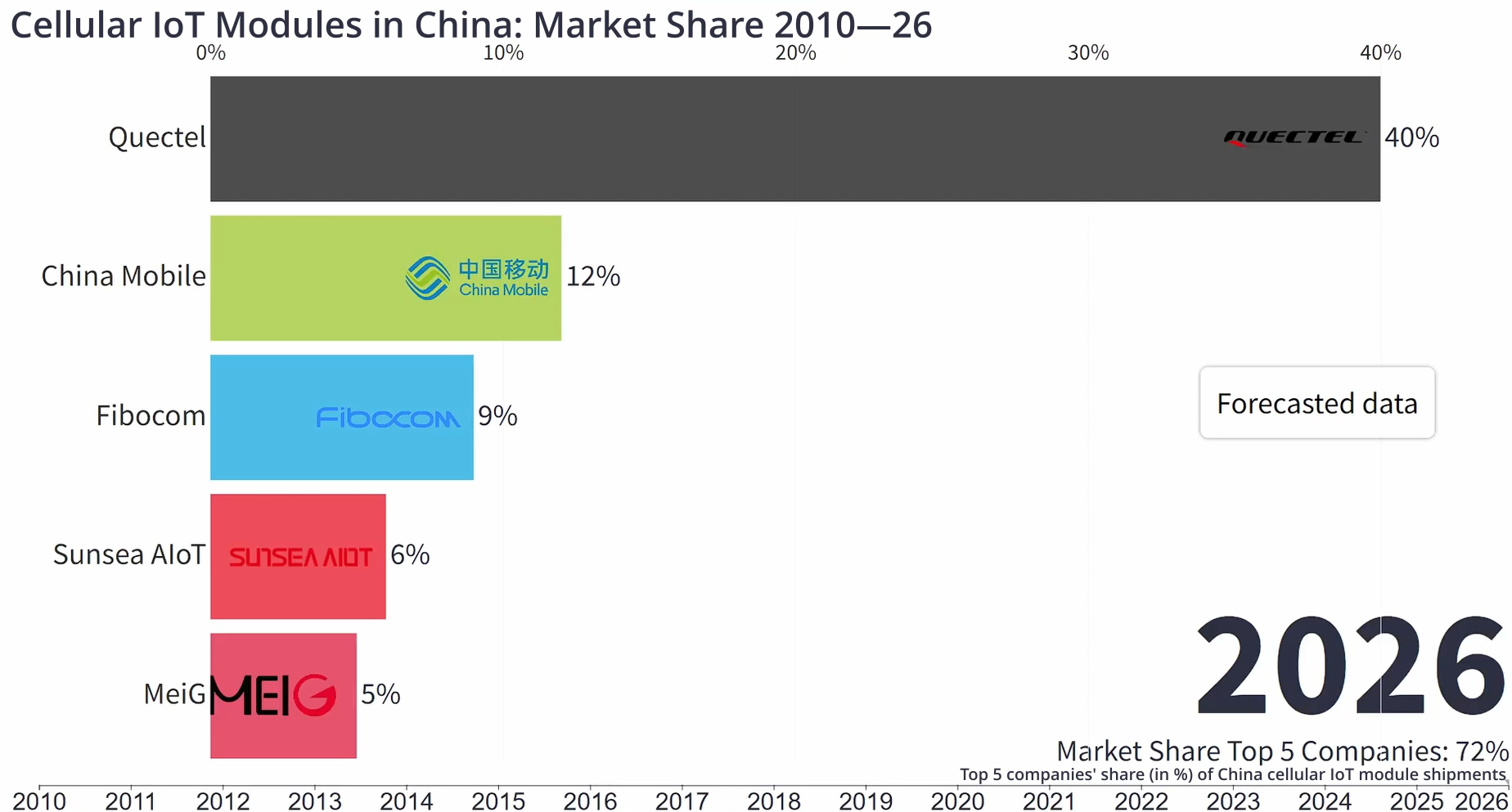 研究机构 Counter Point 的监测数据,全球蜂窝物联网模组 2020Q2 出货量增速为 8%(YoY),收入增速为 15%(YoY)。