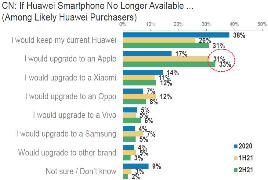 Morgan Stanley 对中国消费者的调研,下一步手机的购买意向以及预算金额。
