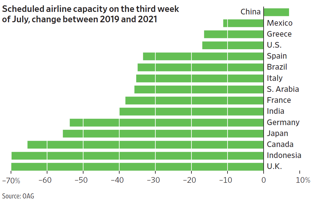 相对靠左侧的数据是 2020 年前六个月对比去年的增幅,后者为仅第六月对比去年的增幅。