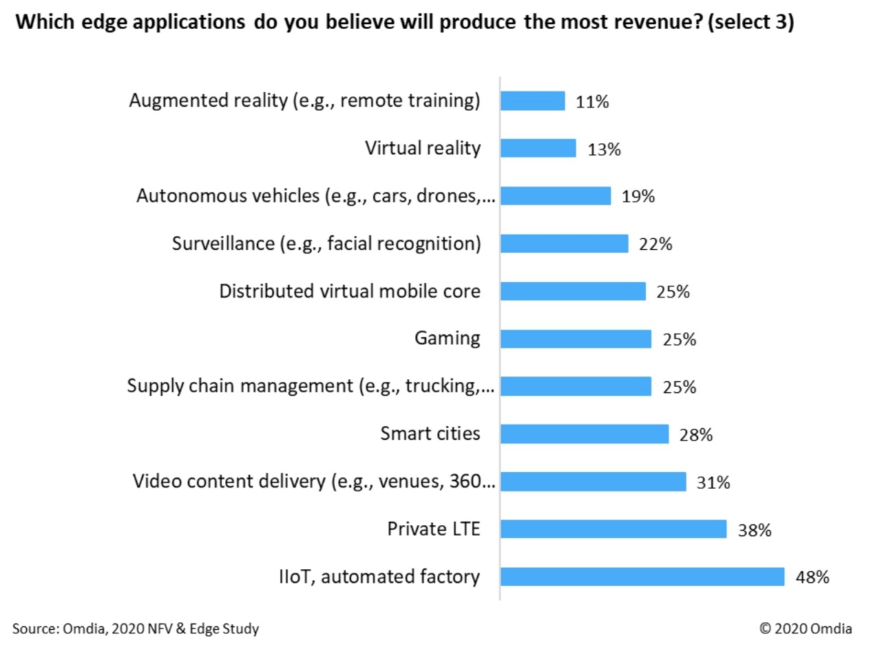 来自 OMDIA 面向运营商的一组调研,基于边缘计算的各类应用中,那些类别变现的可能性最大?