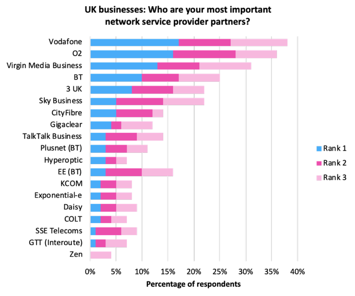 附图是 OMDIA 针对英国企业客户对网络服务供应商的选择(倾向),即使是电信行业的专业人士,对此图的部分名字也很陌生;我觉得对中国市场有参考。