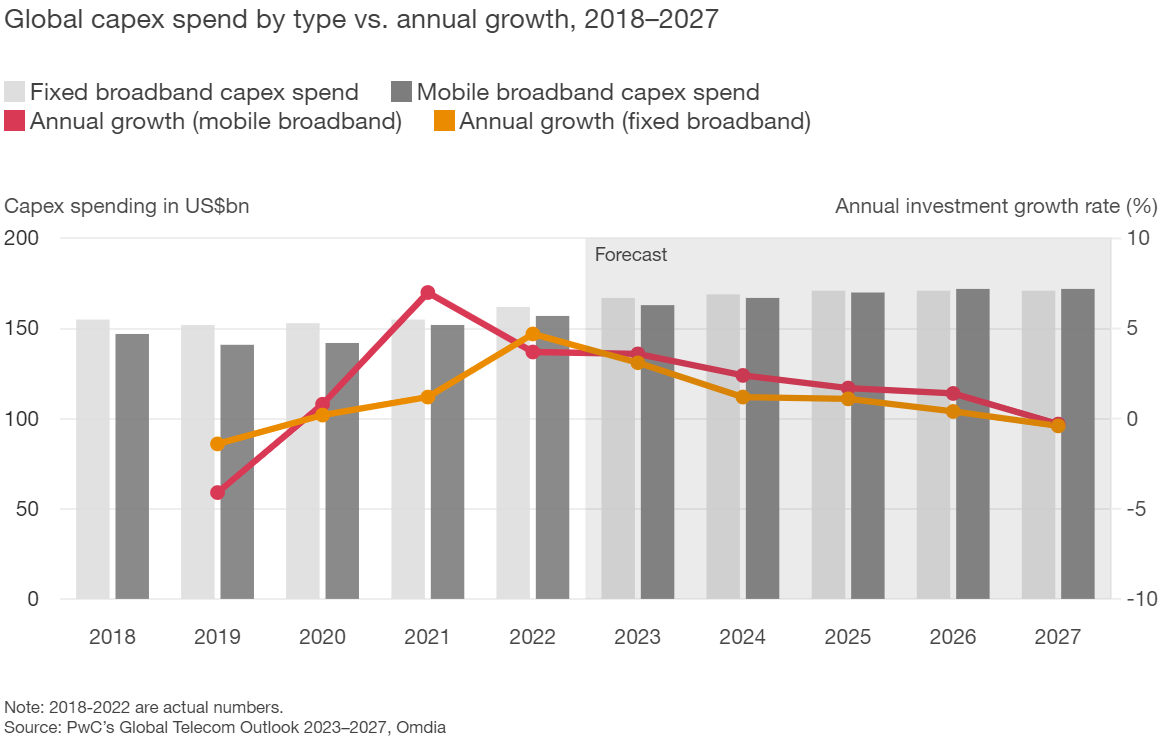 全球运营商固定宽带和移动网络 CAPEX 2018-2027