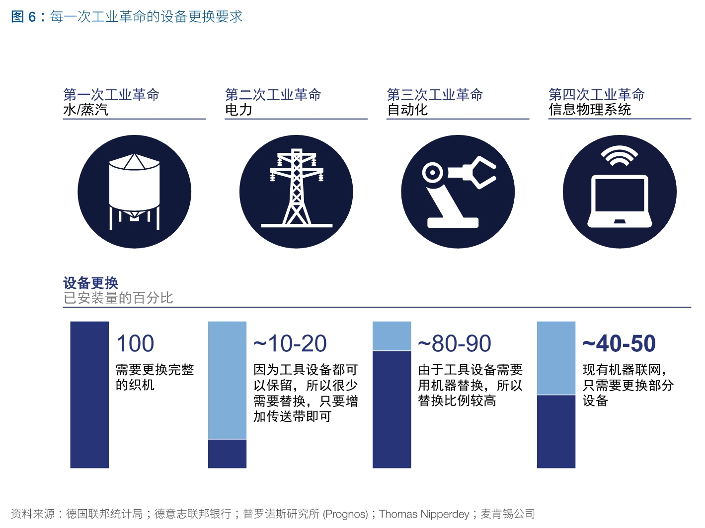 麦肯锡基于德国一些机构的研究,估算了历次工业革命需要更新的设备比例。