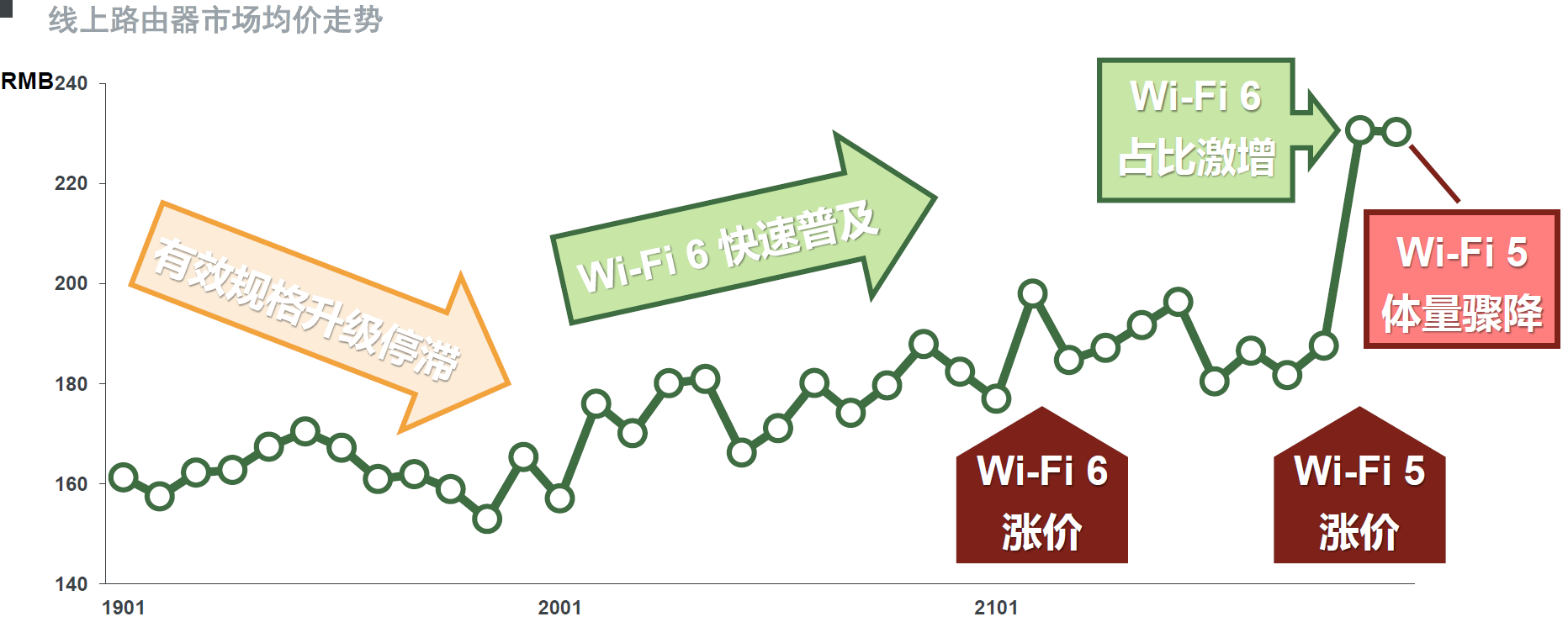 老一代 Wi-Fi 5 仍然占据很大比例,而传统百兆路由器也有一定的份额。