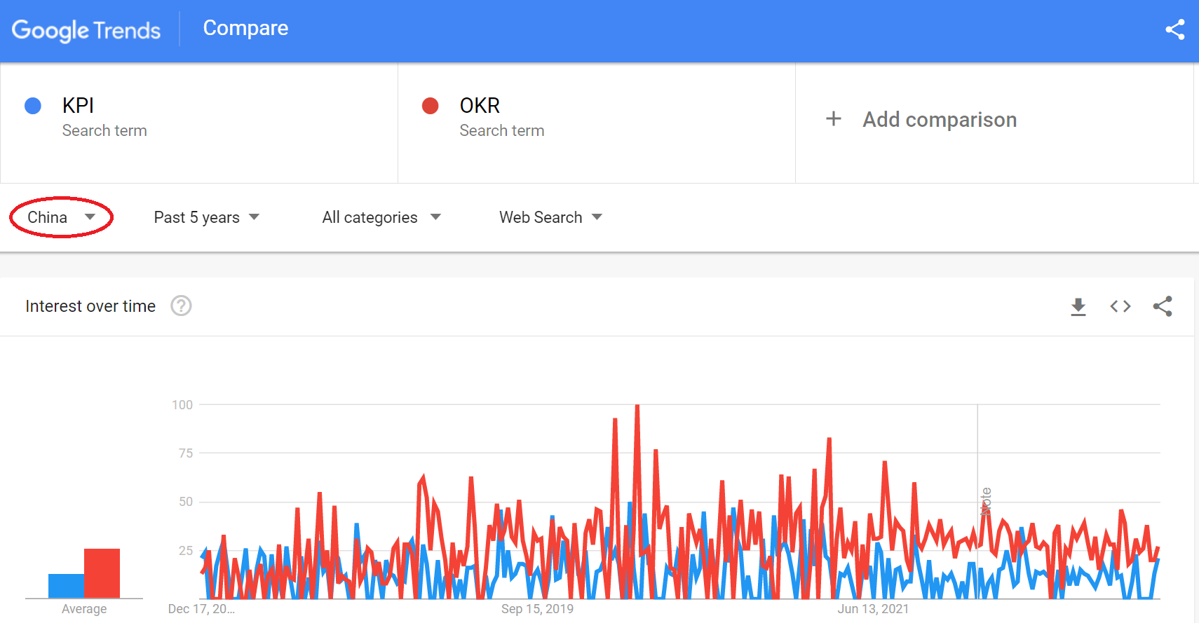 一个可能的推理是:无论是全球、美国、还是中国,KPI 的受关注程度都是远大于 OKR;只有在中国,并且经常用 Google 的用户群体中,OKR 大于 KPI。
