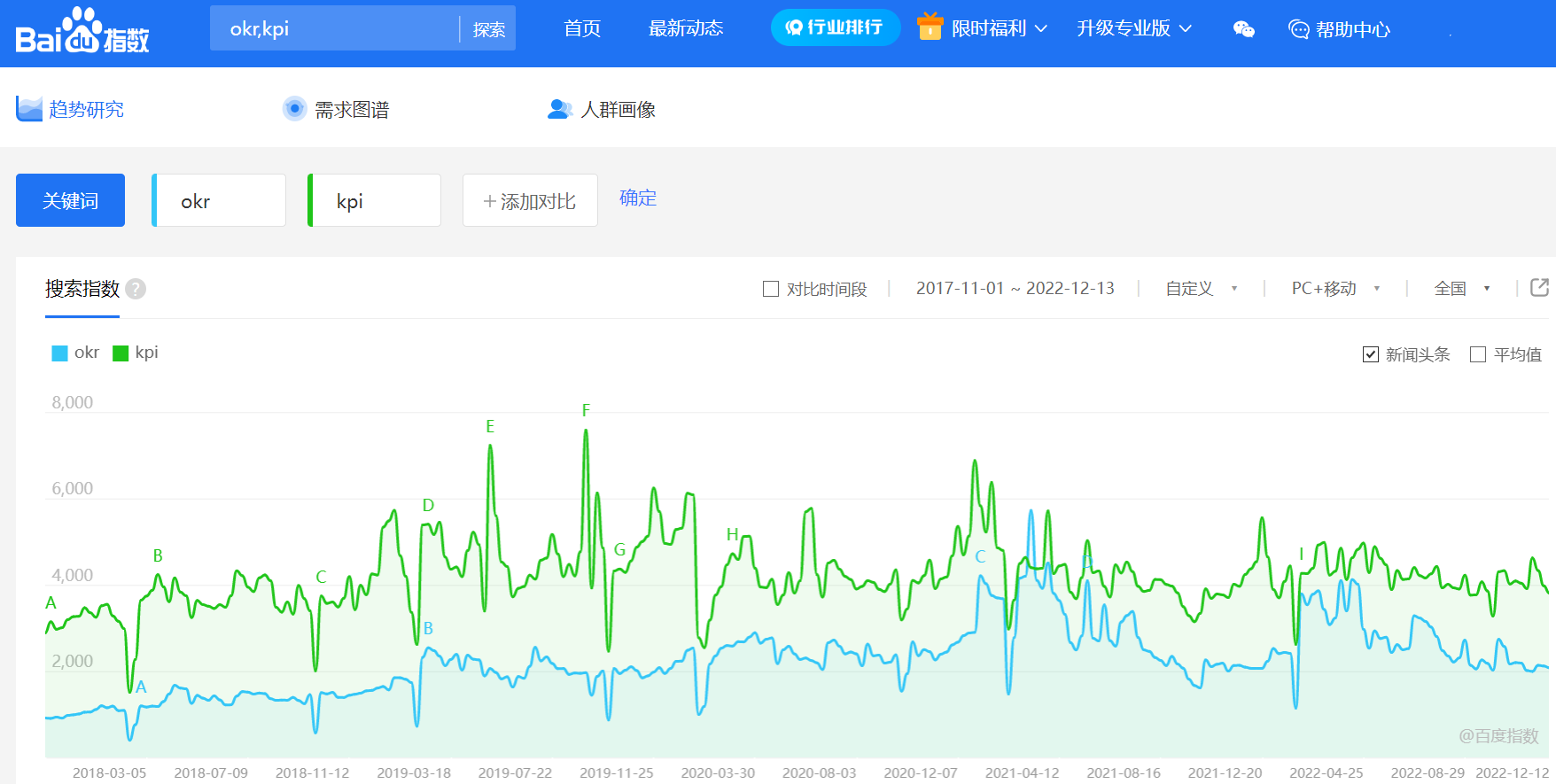 那 KPI 和 OKR 谁更能代表先进的经营思维?或者说,哪个更受目前的产业关注呢?从一些管理论坛或者媒体文章看,貌似 OKR 是先进的,因为时常有一种叙事逻辑 “KPI 存在如何的问题不足 ……”。