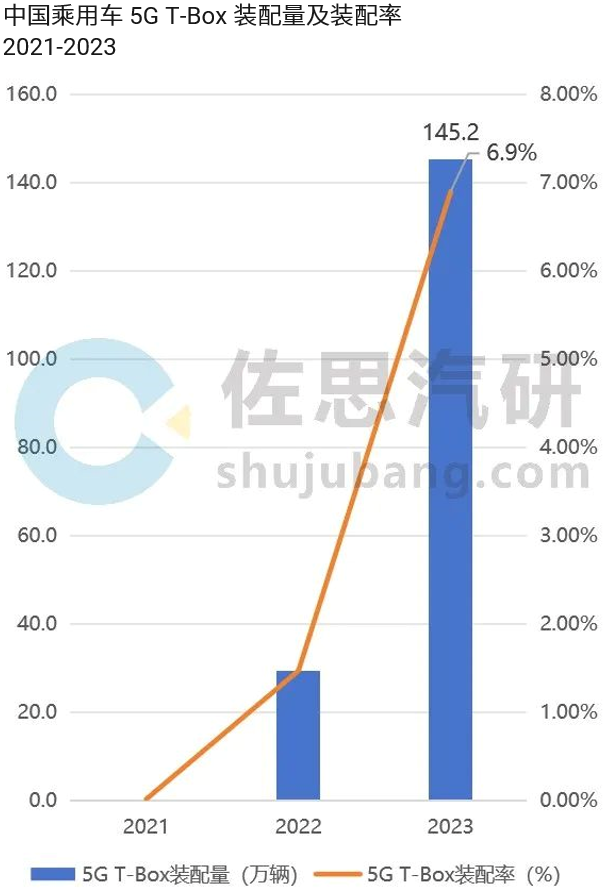 高工智能汽车研究院监测数据显示,2024年1-7月,中国市场(不含进出口)乘用车前装标配 5G 联网功能交付 120.67 万辆,其中,配置独立 T-Box 占比约 50%。