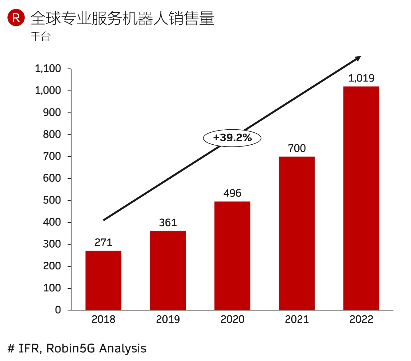根据 IFR 的数据,2022年全球专业服务机器人(Professional Service Robot)将达到 100 万台。