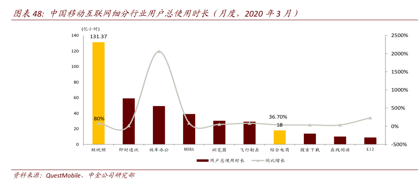 目前中国主要互联网平台中,用户使用时间最多是社交和短视频。