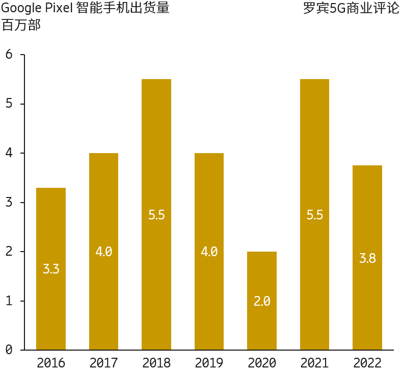 Google 于 2016 年推出 Pixel 品牌手机。根据 IDC 咨询公司的研究,2016-2022 年共计出货 2760 万部,其中大部分款型的出货量在几百万部上下。