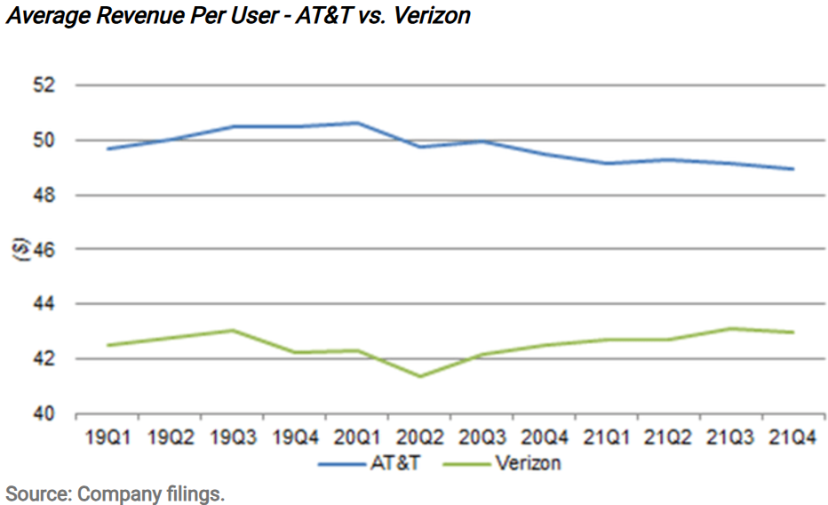 北美电信运营商双雄的 ARPU 对比
