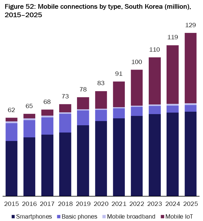 作为 5G 商用的先行市场,韩国在 2022 年 5G 用户占到全网的 36%。