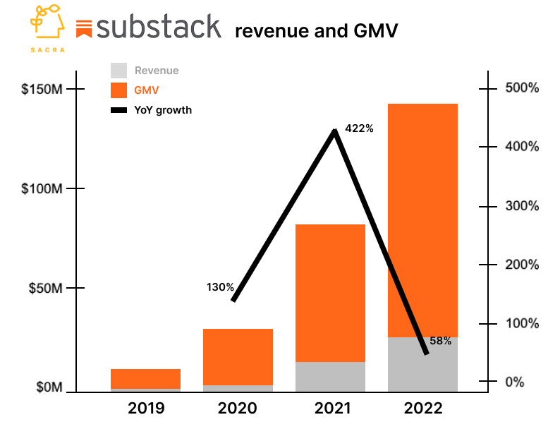 付费 NewsLetter 平台 Substack 的 GMV 与收入